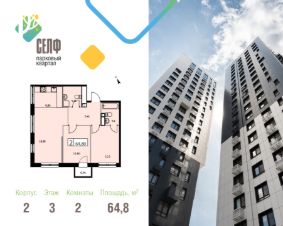 Продается просторная и светлая квартира площадью 64,8 кв. м. на 8 этаже в современном ЖК Парковый Квартал Self. Дом сдан - ключи в день покупки! Семейная ипотека от 5,99%.