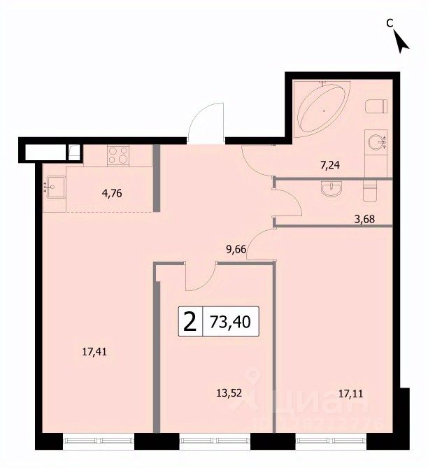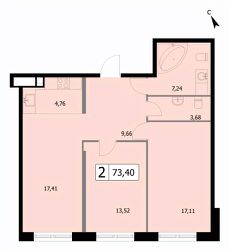 Просторная и светлая квартира площадью 73,4 кв. м. Продуманная планировка квартирывключает в себя отдельное расположение спальни от обеденно - гостиной зоны. Из оконгостиной открывается вид на Останкинскую башню, колесо обозрения и другие высотные