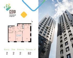 Продается просторная и светлая квартира площадью 62 кв. м. на 2 этаже в современном ЖК Парковый Квартал Селф. Дом сдан - ключи в день покупки! Семейная ипотека от 5,99%.