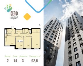 Продается просторная и светлая квартира площадью 92,6 кв. м. на 14 этаже в современном ЖК Парковый Квартал Селф. Дом сдан - ключи в день покупки! Семейная ипотека от 5,99%.