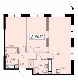 Просторная и светлая квартира площадью 66,8 кв. м. Продуманная планировка квартиры включает в себя отдельное расположение спальни от обеденно - гостиной зоны. Из окон гостиной открывается вид на Останкинскую башню, колесо обозрения и другие высотные
