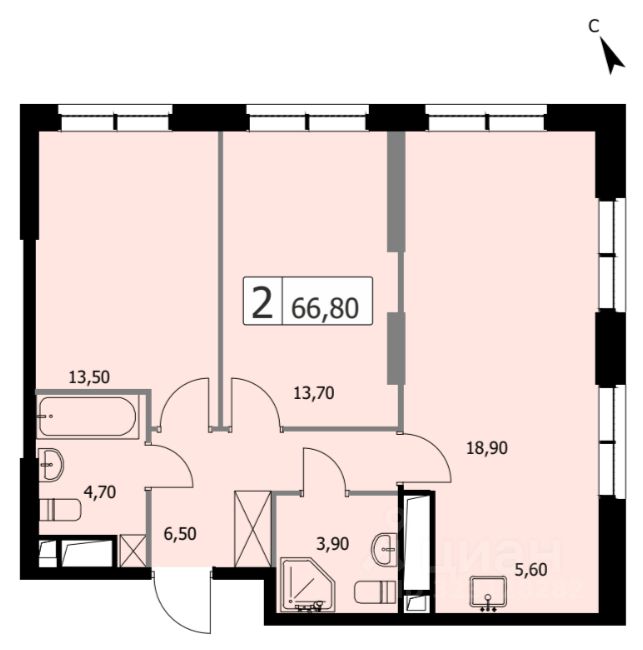 66,8 м²