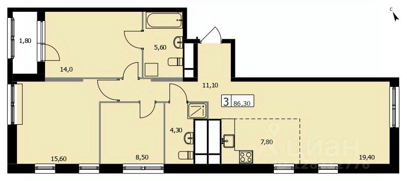 86,3 м²