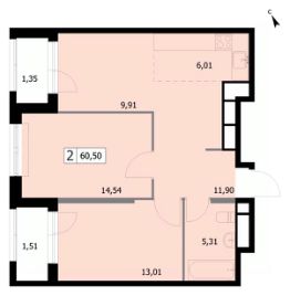 Просторная и светлая квартира площадью 60,9 кв. м. Продуманная планировка квартирывключает в себя отдельное расположение спальни от обеденно - гостиной зоны. Из оконгостиной открывается вид на Останкинскую башню, колесо обозрения и другие высотные