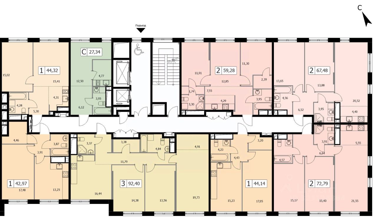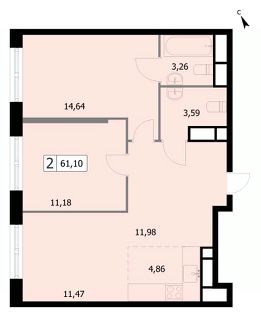 Просторная и светлая квартира площадью 61,1 кв. м. Продуманная планировка квартиры включает в себя отдельное расположение спальни от обеденно - гостиной зоны. Из окон гостиной открывается вид на Останкинскую башню, колесо обозрения и другие высотные объекты.