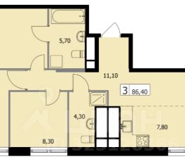 Продается просторная и светлая квартира площадью 86,4 кв. м. на 17 этаже в современном ЖК Парковый Квартал Селф.