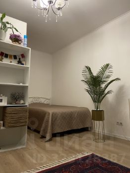 В комнате большое почти во всю стену окно, которое в совокупности с потолками 2,7 м и светлым интерьером создает ощущение легкости и пространства. Комната зонирована, выделено спальное место.