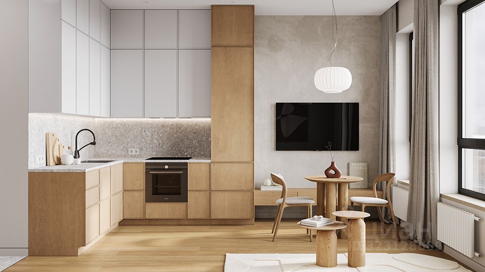 Светлая студия 29,8 м² с 2 окнами и широкой комнатой 4,7 м
