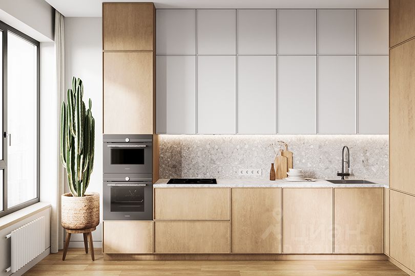 — Линейная кухня легко встраивается в интерьер и не перегружает общую зону