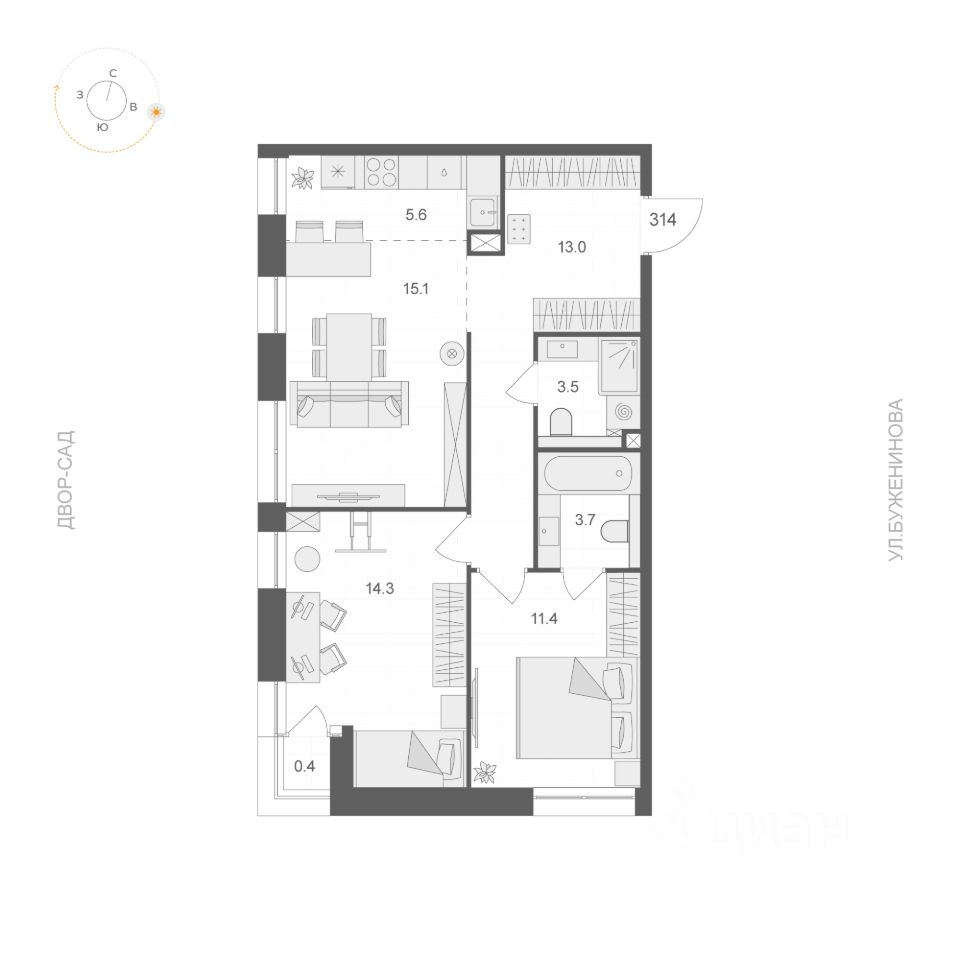 Квартира без отделки. Доступна опция дозаказа (2 варианта отделки на выбор).