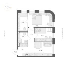 Квартира без отделки. Доступна опция дозаказа (2 варианта отделки на выбор).