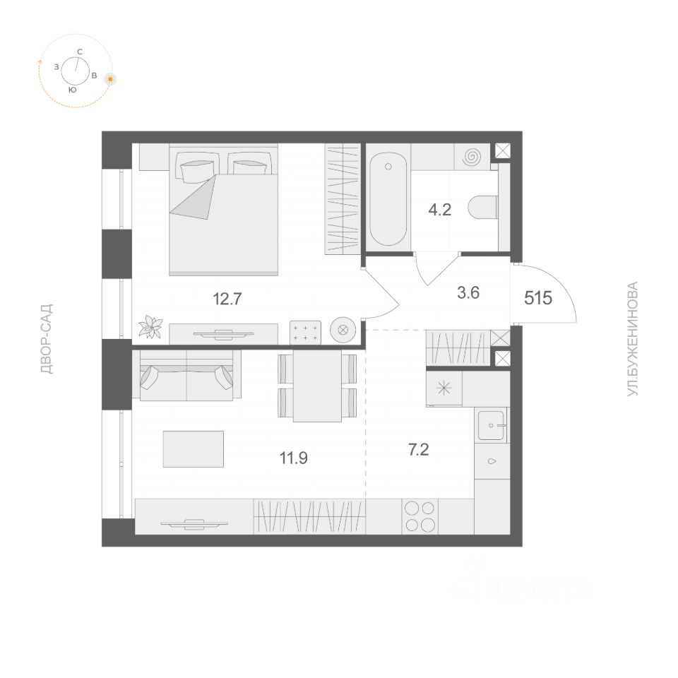 Жилая площадь12,7 м²