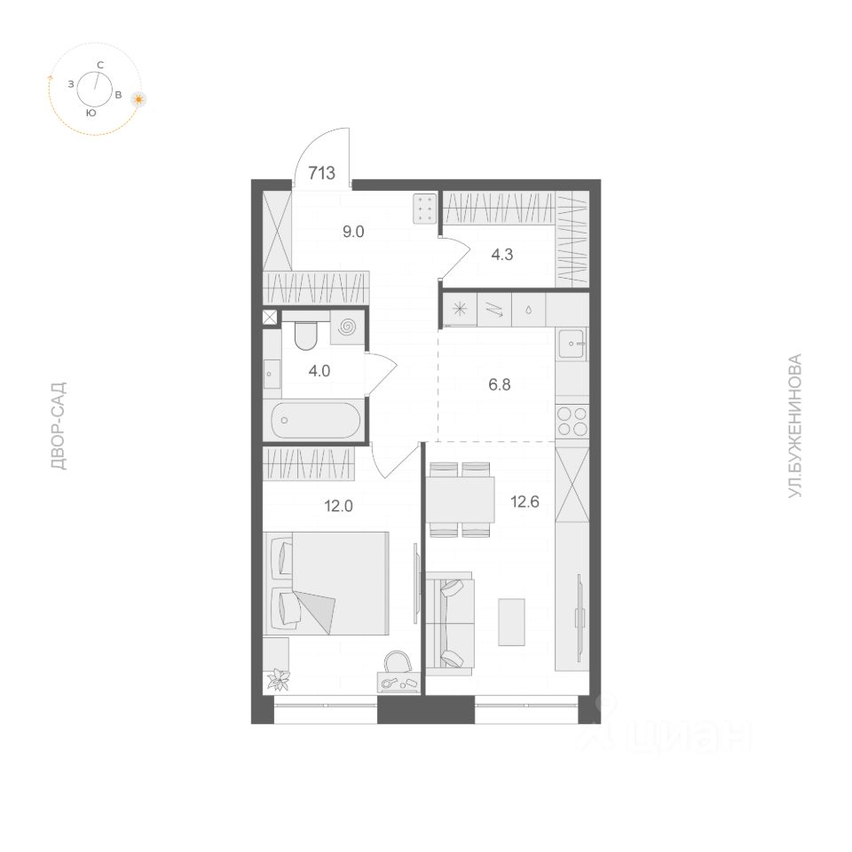 Общая площадь48,7 м²