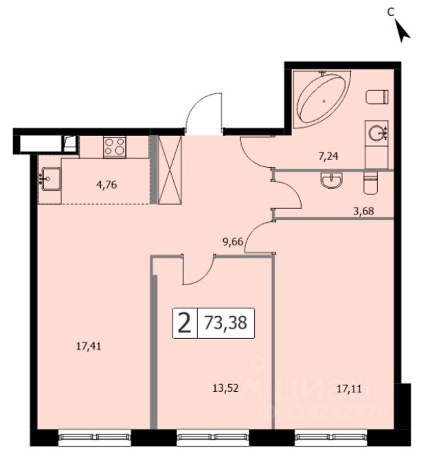 Просторная и светлая квартира площадью 73,5 кв. м. Продуманная планировка квартирывключает в себя отдельное расположение спальни от обеденно - гостиной зоны. Из оконгостиной открывается вид на Останкинскую башню, колесо обозрения и другие высотные