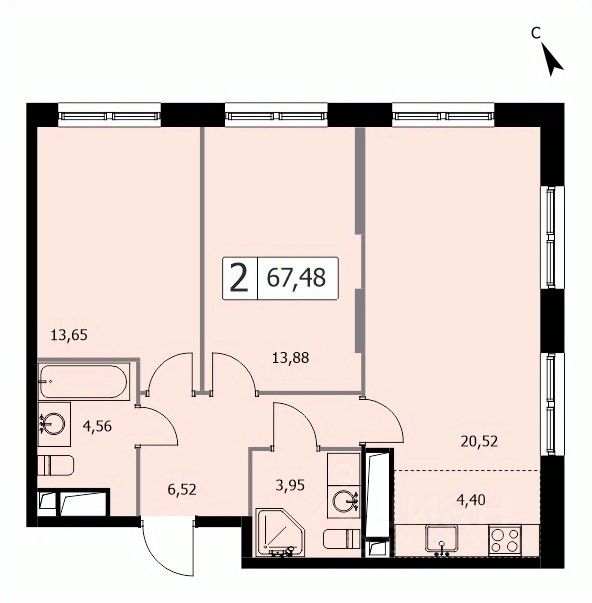 Просторная и светлая квартира площадью 67,4 кв. м. Продуманная планировка квартирывключает в себя отдельное расположение спальни от обеденно - гостиной зоны. Из оконгостиной открывается вид на Останкинскую башню, колесо обозрения и другие высотные объекты.