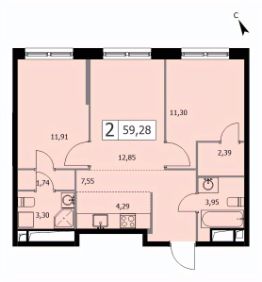 Просторная и светлая квартира площадью 59,4 кв. м. Продуманная планировка квартирывключает в себя отдельное расположение спальни от обеденно - гостиной зоны. Из оконгостиной открывается вид на Останкинскую башню, колесо обозрения и другие высотные объекты.