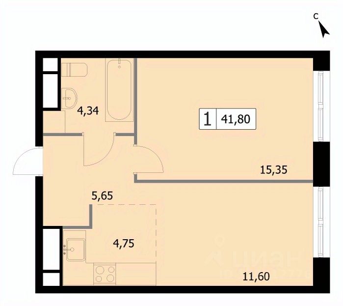 Просторная и светлая квартира площадью 41,7 кв. м. Балкон площадью 0,73 кв. м. Продуманная планировка квартирывключает в себя отдельное расположение спальни от обеденно - гостиной зоны. Из оконгостиной открывается вид на Останкинскую башню, колесо обозрения и другие высотные
