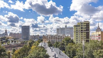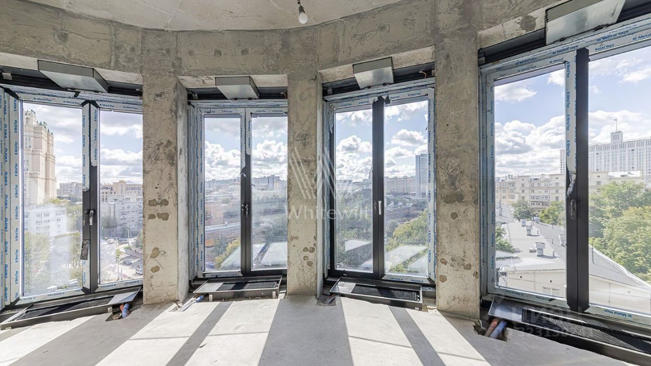 Апартаменты с двумя спальнями общей площадью 91 м² в комплексе премиум-класса Sky View в Пресненском районе. Апартаменты без отделки расположены на восьмом этаже в башне В. Планировка включает кухню-гостиную, две спальни, три санузла и гардеробную. Благодаря панорамному остеклению пространство наполнено естественным светом и теплом, открываются виды на центр Москвы, Дом Правительства и Арбат.