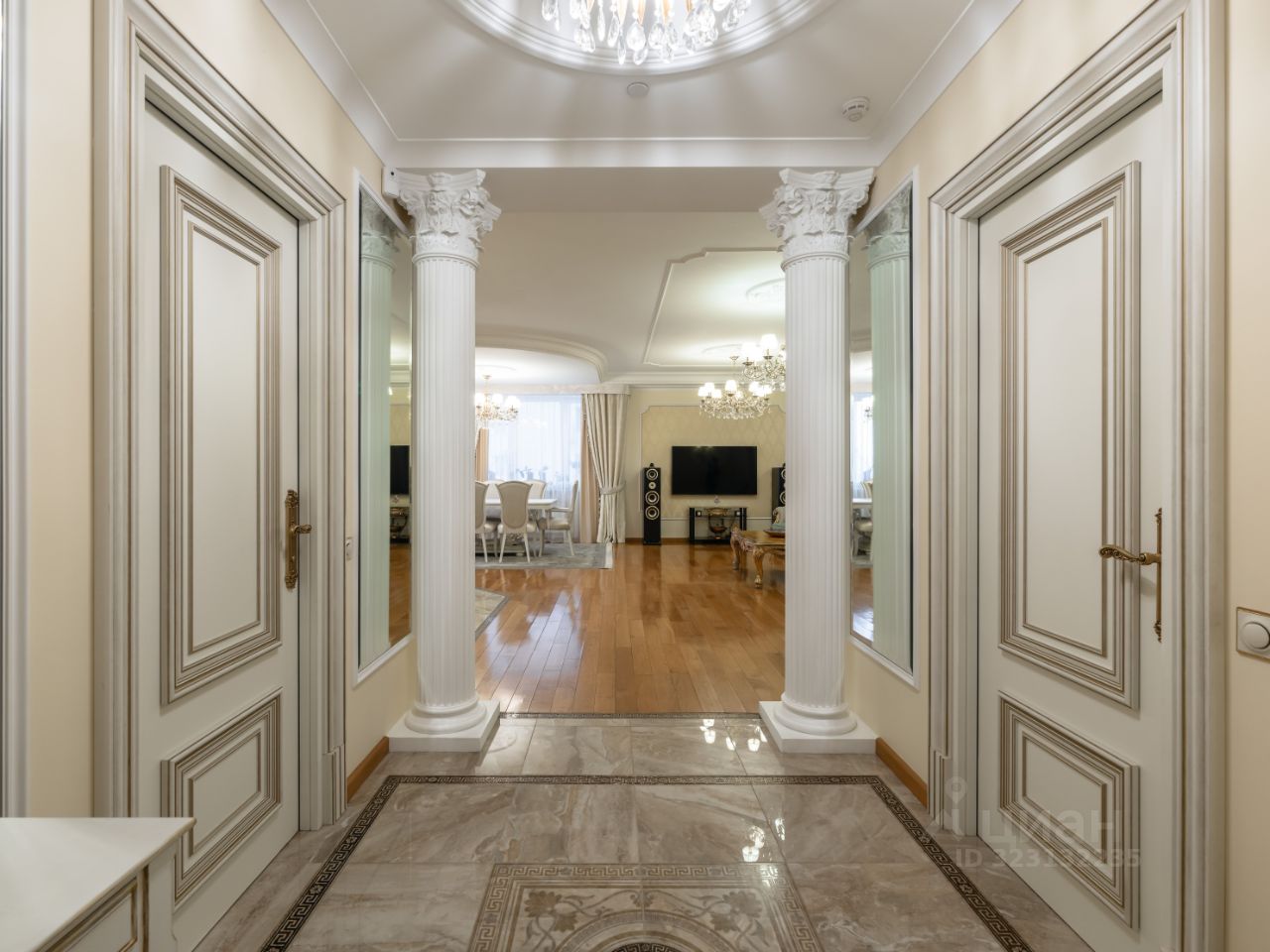 Планировочное решение квартиры: прихожая, гардеробная, гостевой санузел, единое пространство кухня-столовая-гостиная, просторный холл, мастер-спальня с гардеробной и роскошной ванной комнатой, плюс две большие спальни, санузел.