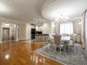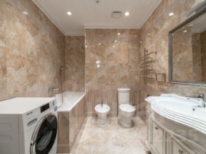 Квартира обставлена мебелью премиум класса производство Италия, кухня оборудована бытовой техникой ведущих производителей, сантехника Villeroy & Boch. Полы натуральный паркет, в кухонной зоне, прихожей, постирочной и санузлах, везде установлены полы с подогревом.