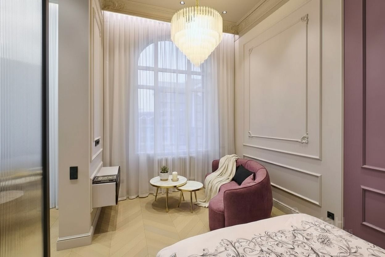 Редкая возможность приобрести квартиру с потолками 3,8 м и большим арочным окном - таких в доме всего несколько. Вид во внутренний двор создает атмосферу приватности и уюта, а высокие потолки и панорамное остекление наполняют пространство воздухом и светом.