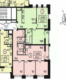 Арт. 122848982 Продается 3-комнатная квартира с видом на пруд, площадью 66,2 кв. м в