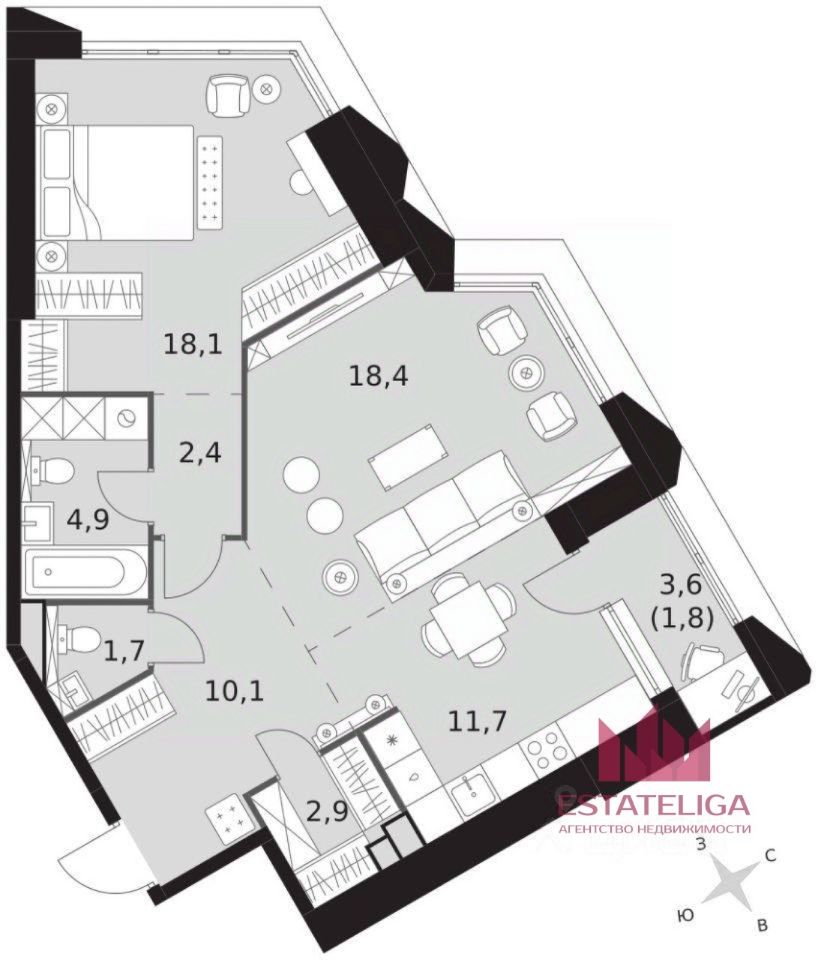 • Продуманная и функциональная планировка, благодаря которой можно сделать две изолированные комнаты