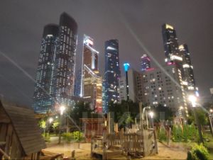 Пешие дорожки ведут в прогулочную зону Краснопресненских прудов, откуда вечером открывается сказочный вид на CITY PARK с "эмоциональной" архитектурной подсветкой