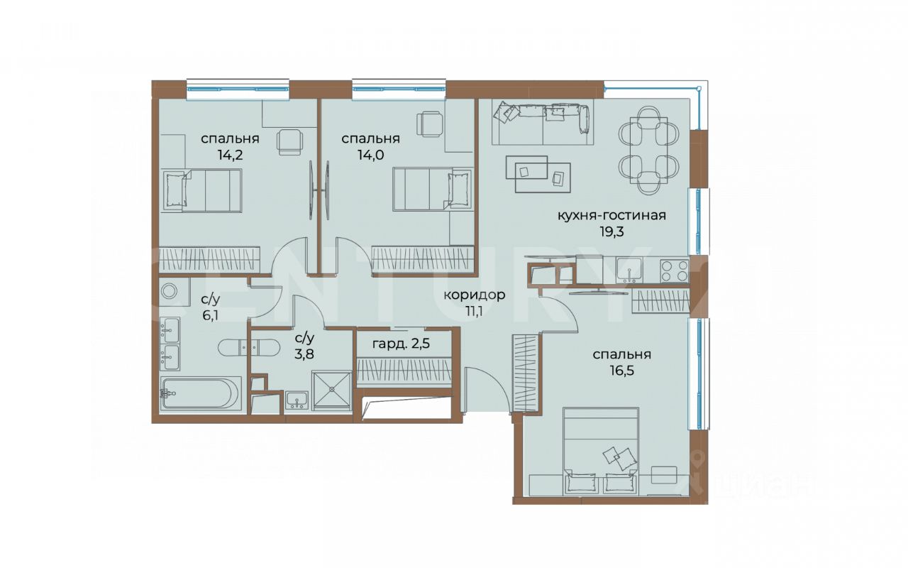 К покупке предлагается великолепная четырёхкомнатная квартира без отделки в ЖК "Остров".