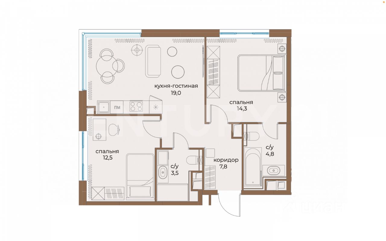 Две спальни (одна из них с собственной ванной и гардеробной)