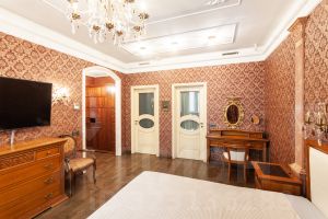 Зона спальни сделана по принципу Master bedroom: спальня, ванная комната, гардеробная и функциональный балкон с рабочей зоной. Кровать с подъемным механизмом 180х210. Туалетный столик с поворотным зеркалом с эффектом увеличения и подсветкой. Гардеробная с лифтовыми штангами и зеркалом в полный рост. В ванной сантехника Villeroy&Boch, Оборудованная постирочная со стир. машиной Haier и сушильным шкафом Asko.