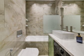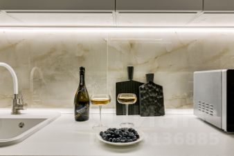 Дизайн проект выполнен в стиле минимализм с использованием современных материалов. Вся мебель и техника входит в стоимость объекта недвижимости - холодильник, стиральная машина, посудомоечная машина, духовой шкаф, варочная поверхность, кондиционер. Окна квартиры на двор и ТЦ. В ванной установлен теплый пол.