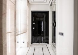На первом этаже офисные помещения от 35 до 242 кв. м, без внутренних перегородок и отделки. В холлах колясочные и места для консьержей. В паркинге - кладовые. Места общего пользования будут оформлены следующим образом: на полу керамогранитная плитка с матовым покрытием, стены покрашены водоэмульсионной краской, подвесные потолки типа "Армстронг". В секциях установят по два лифта KONE грузоподъёмностью 1000 кг и 400 кг.
