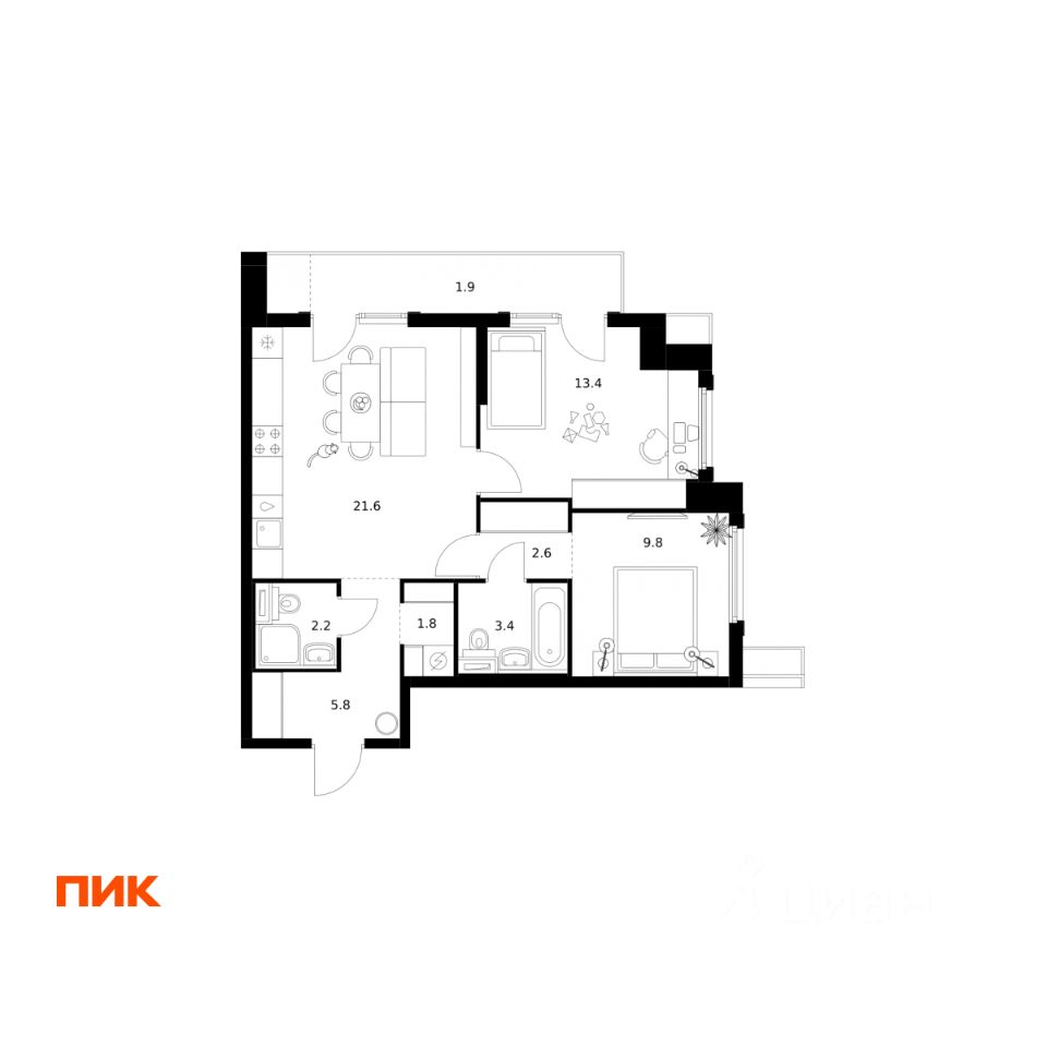 В "Бусиновском парке" предусмотрены квартиры с панорамным остеклением, различными балконами, эркерами, угловыми окнами и большим количеством окон — до пяти в одной комнате. В таких квартирах широкий угол обзора: можно пить кофе, наблюдая за жизнью на улице и наслаждаясь ощущением простора. Ещё больше комфорта придаст мягкий солнечный свет, который равномерно осветит всю квартиру. Артикул 95