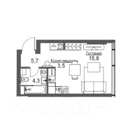 Продаётся студия с просторной кухней-гостиной, панорамными окнами, без отделки: