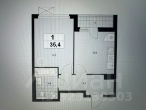 Общая площадь квартиры 35,4 кв.м: кухня 10,9 кв м, спальня 12.5 кв м