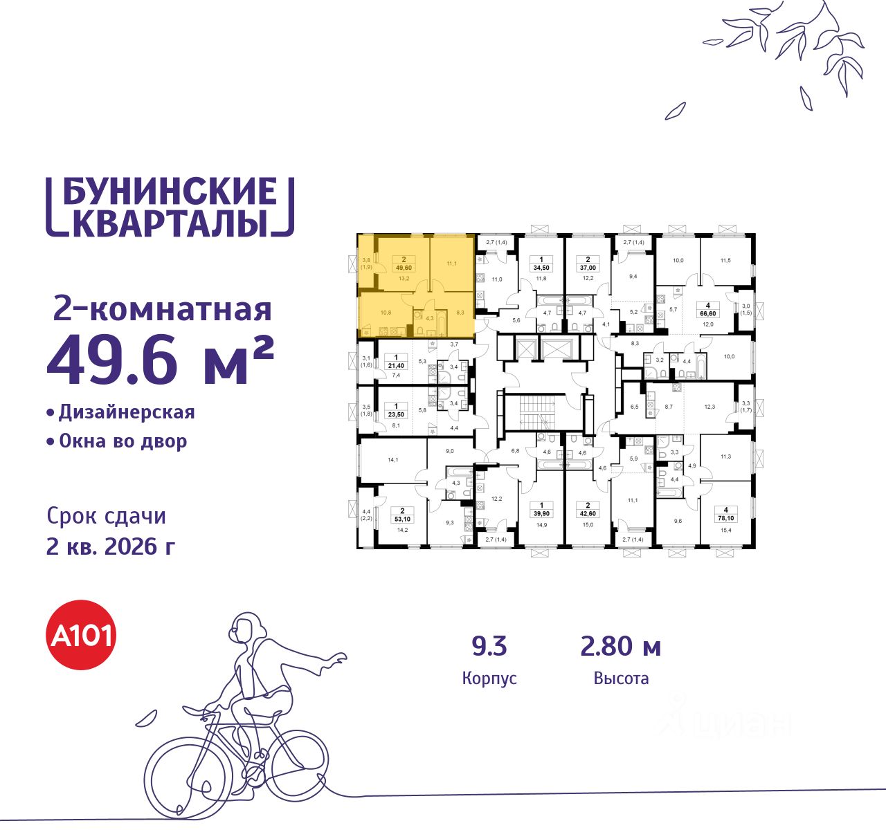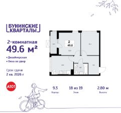 Продается двухкомнатная квартира 815 в новостройке ЖК "Бунинские кварталы" по адресу Москва, ТиНАО, Новомосковский АО, Сосенское С/П, жилой комплекс Бунинские Кварталы, 9.3, район Коммунарка, Новомосковский административный округ, Москва. Общая площадь квартиры - 49.60 кв. м., этаж 18 из 19, секция 9. Тип проекта, по которому построен дом - монолит, компания-застройщик - ООО "А101". Стоимость квартиры - 20055760 Р. Срок сдачи - 2 квартал 2026.