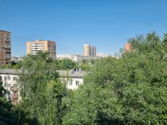 Квартира находится на 7 этаже кирпичного дома первого подьезда, 8 этаж технический. Окна выходят во двор, перед окнами растет много многолетних деревьев, что придает уюта и закрывает от посторонних взглядов.