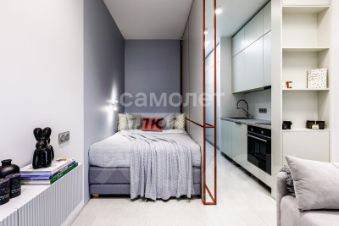 Просторная студия грамотно зонирована, поэтому здесь будет комфортно как для отдыха, так и для приема гостей. Санузел совмещенный и оснащен всей необходимой сантехникой. Окна выходят во двор, поэтому в квартире будет тихо и уютно.