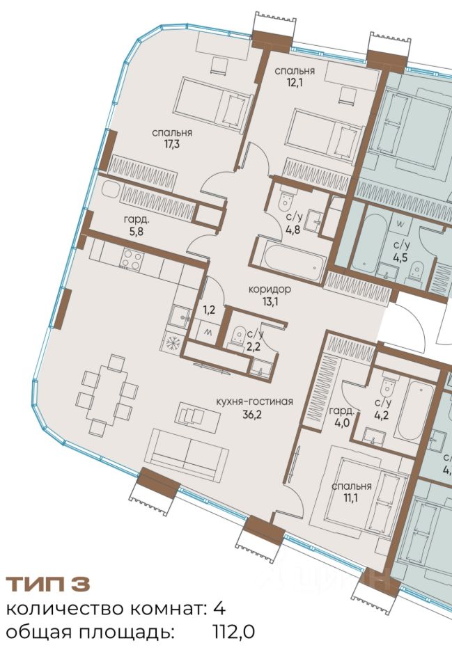 •Общая площадь 112 м²