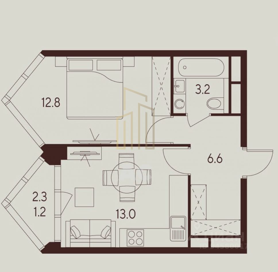 Арт. 123008858 Просторная 1-комнатная квартира на 7 этаже.