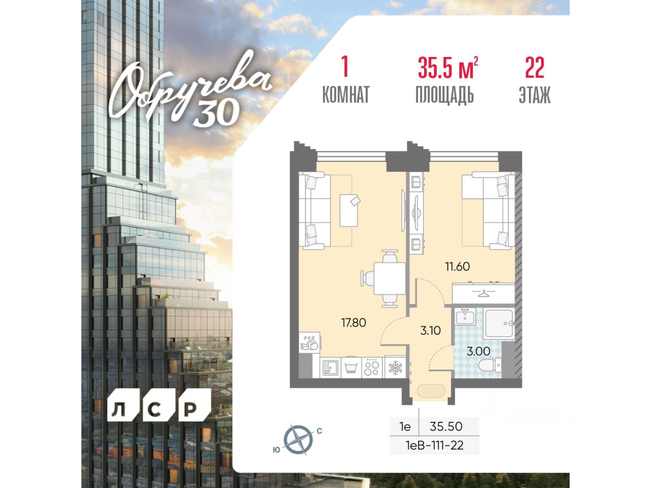 Продается 1-комнатная квартира общей площадью 35.5 кв. метров на 22 этаже дома бизнес-класса "Обручева 30". Дом располагается в 5 минутах ходьбы до станции метро "Калужская" и 10 минутах до станции метро "Воронцовская". Для автомобилистов удобный и быстрый выезд на улицы Обручева и Профсоюзную.