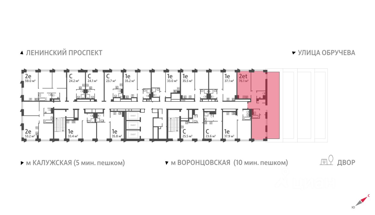Продается 2-комнатная квартира общей площадью 76.1 кв. метров на 22 этаже дома бизнес-класса "Обручева 30". Дом располагается в 5 минутах ходьбы до станции метро "Калужская" и 10 минутах до станции метро "Воронцовская". Для автомобилистов удобный и быстрый выезд на улицы Обручева и Профсоюзную.