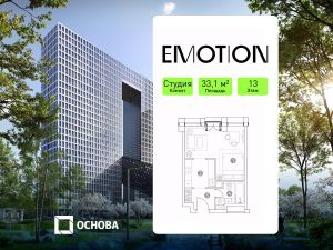 Продается студия площадью 33.1 кв.м. на 13-м этаже 28 этажного дома в "Emotion" от ГК ОСНОВА
