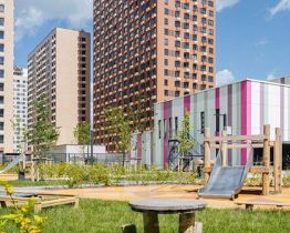В районе, 2 детских сада на 150 и 235 мест, школа на 1100 мест и подземные паркинги на 525 машиномест.