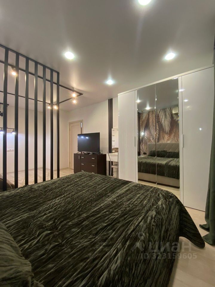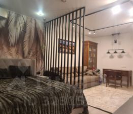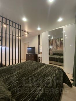 Комната удобно зонирована на зону спальни, зону отдыха (с диваном и телевизором) и зону кабинета.