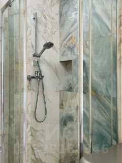 В мастер ванной ремонт сделан до "чистового" этапа ( т.е. осталось только плитку уложить) .