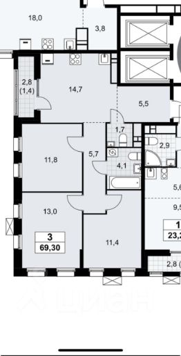 14,7 м²