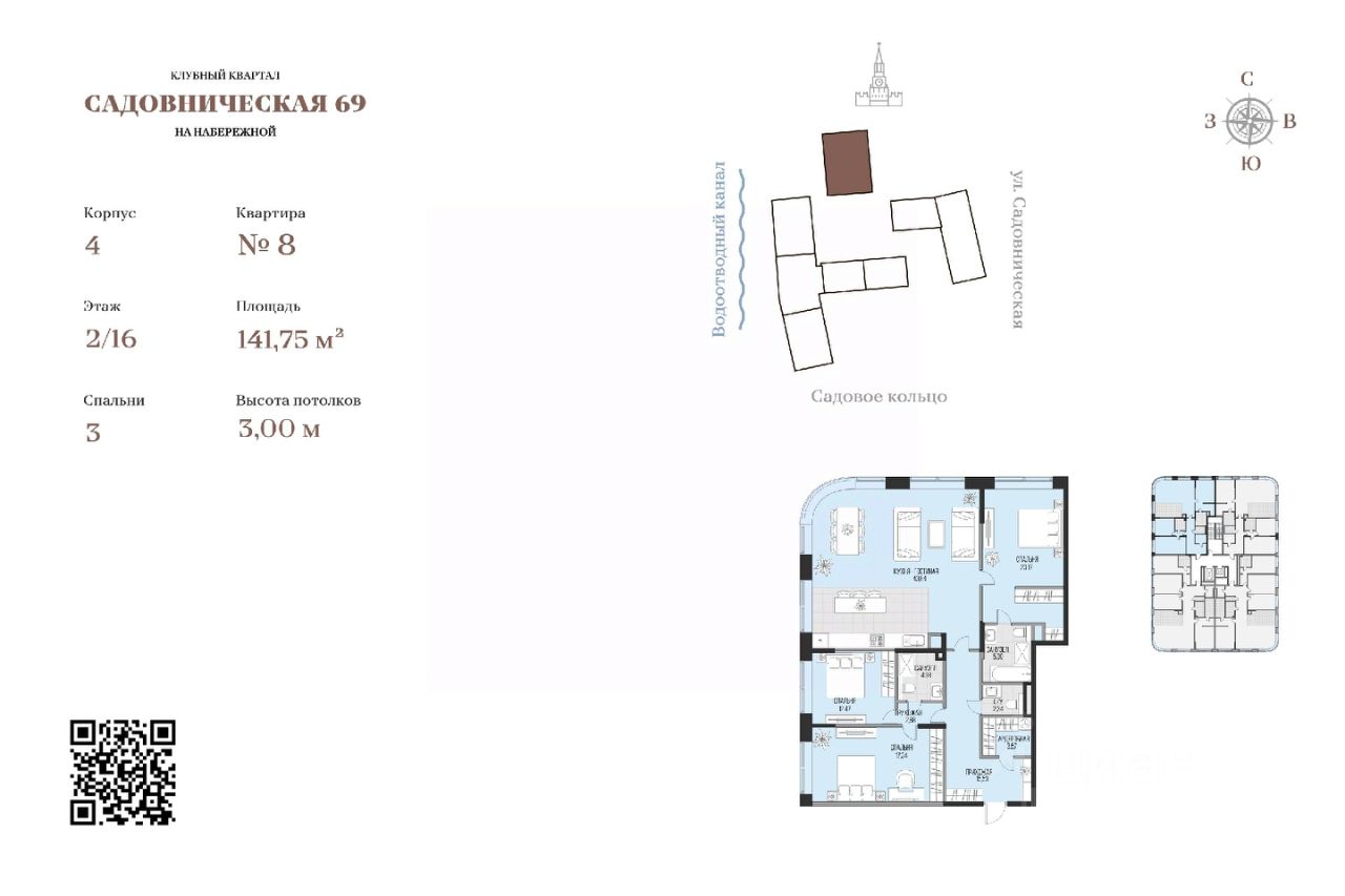 "Садовническая 69" — это клубный квартал класса deluxe, где каждая деталь продумана и тщательно выверена. В комплексе представлены разнообразные варианты жилья: видовые квартиры, резиденции с террасами и патио, пентхаусы и городские виллы. Всего в проекте четыре корпуса высотой от 2 до 16 этажей. Транспортная доступность На автомобиле комплекс находится всего в 700 метрах от Садового кольца и в 2,3 километрах от Кремля. За 15 минут можно добраться до Третьяковской галереи, ГУМа, парка "Зарядье" и Храма Христа Спасителя. До "Москва-Сити" — около получаса езды. Инфраструктура В "Садовнической 69" безопасность и комфорт жителей — приоритет. Круглосуточное видеонаблюдение, вход в жилой комплекс по персональным смарт-картам и в паркинг — по цифровому ключу обеспечивают надёжную защиту. В проекте предусмотрен двухуровневый подземный паркинг на 234 машино-места с пологим въездом, а также гостевая парковка на 8 машин. Есть кладовые для хранения. В центре квартала расположен ландшафтный парк с цветущими деревьями, плодовым садом и игровой зоной — это идеальное место для прогулок и отдыха на свежем воздухе. Поблизости от комплекса находятся школы, детские сады, кафе, рестораны и магазины. Всё необходимое для комфортной жизни — в шаговой доступности. Гранд-лобби с консьерж-сервисом, зимним садом, баром и камином создаёт атмосферу уюта и гостеприимства. Богатая инфраструктура проекта включает велнесс-зону с бассейном, фитнес-залом, хамамом, сауной и бьюти-зоной, а также приватные переговорные, зоны отдыха, комнаты для занятий с детьми и детские игровые пространства. Архитектура Технология строительства "Садовнической 69" — монолитная с панорамным остеклением и отделкой фасадов облицовочным камнем. 4 клубных корпуса расположились на 1 га приватной территории. Архитектура проекта объединяет современные тренды и уважение к историческому наследию острова Балчуг. Во главе элитного квартала величественно расположилась 59-метровая доминанта, из окон которой открываются картинные панорамы на Москву. О застройщике Застройщиком комплекса является компания, специализирующаяся на строительстве жилых комплексов. Она имеет опыт работы в качестве заказчика-застройщика и генерального подрядчика, что гарантирует высокое качество строительства и соответствие всем стандартам.