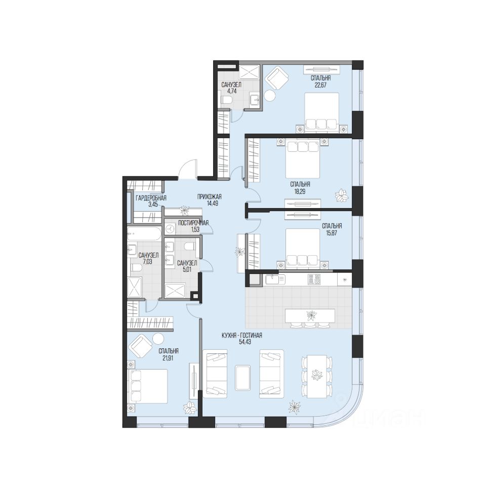 Просторная светлая квартира площадью 169,42 кв.м. Из окон квартиры открываются живописные виды на Москва-реку, старинные мосты и величественные башни Кремля. Витражное остекление выходит на тихую гладь реки или внутренний сад — такое решение обеспечивает максимум естественного света и красивые панорамы.